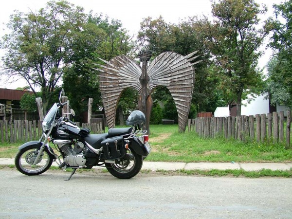 község határában egy faragott tábla fogad minket "Köszöntjük